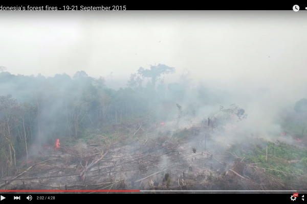 Greenpeace merilis rekaman video dari drone yang memperlihatkan secara dramatis kebakaran hutan dan lahan gambut yang menyala hebat di wilayah Kalimantan.